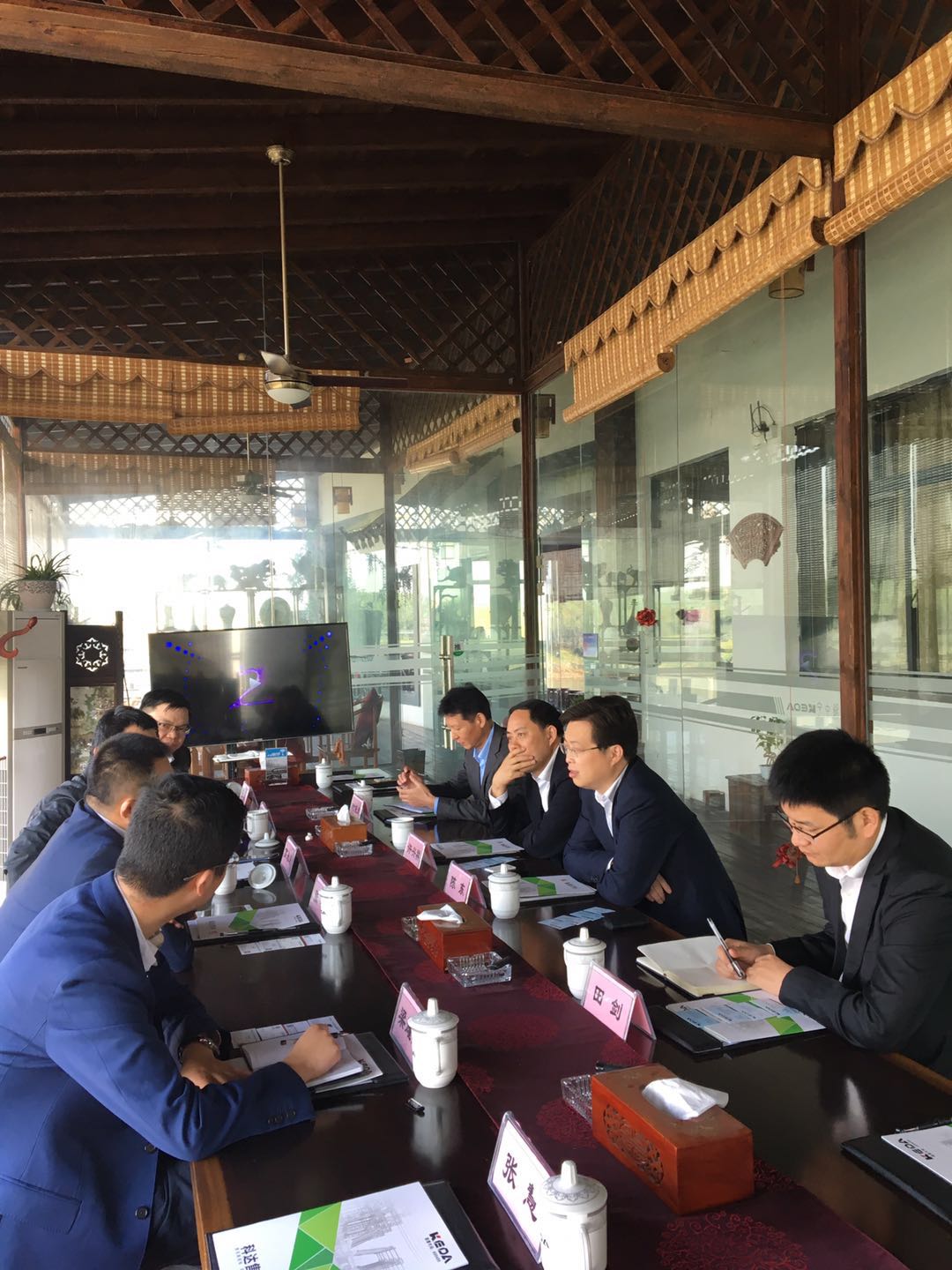 雙方在科達園商務中心茶社進行瞭座談。首先,張峰董事長表達瞭對客人的歡迎之情,同時将科達的成長曆程,科達的發展規劃及科達企業文化等做瞭簡單介紹,就能源管理、電力市場等相關信息,與對方進行瞭深度的探讨。接著,江蘇科達梁耀星總經理向許興祥董事長、陳東董事長等介紹瞭科達售電的相關情況以及江蘇省電力市場現狀,並進行瞭詳盡的解讀分析。