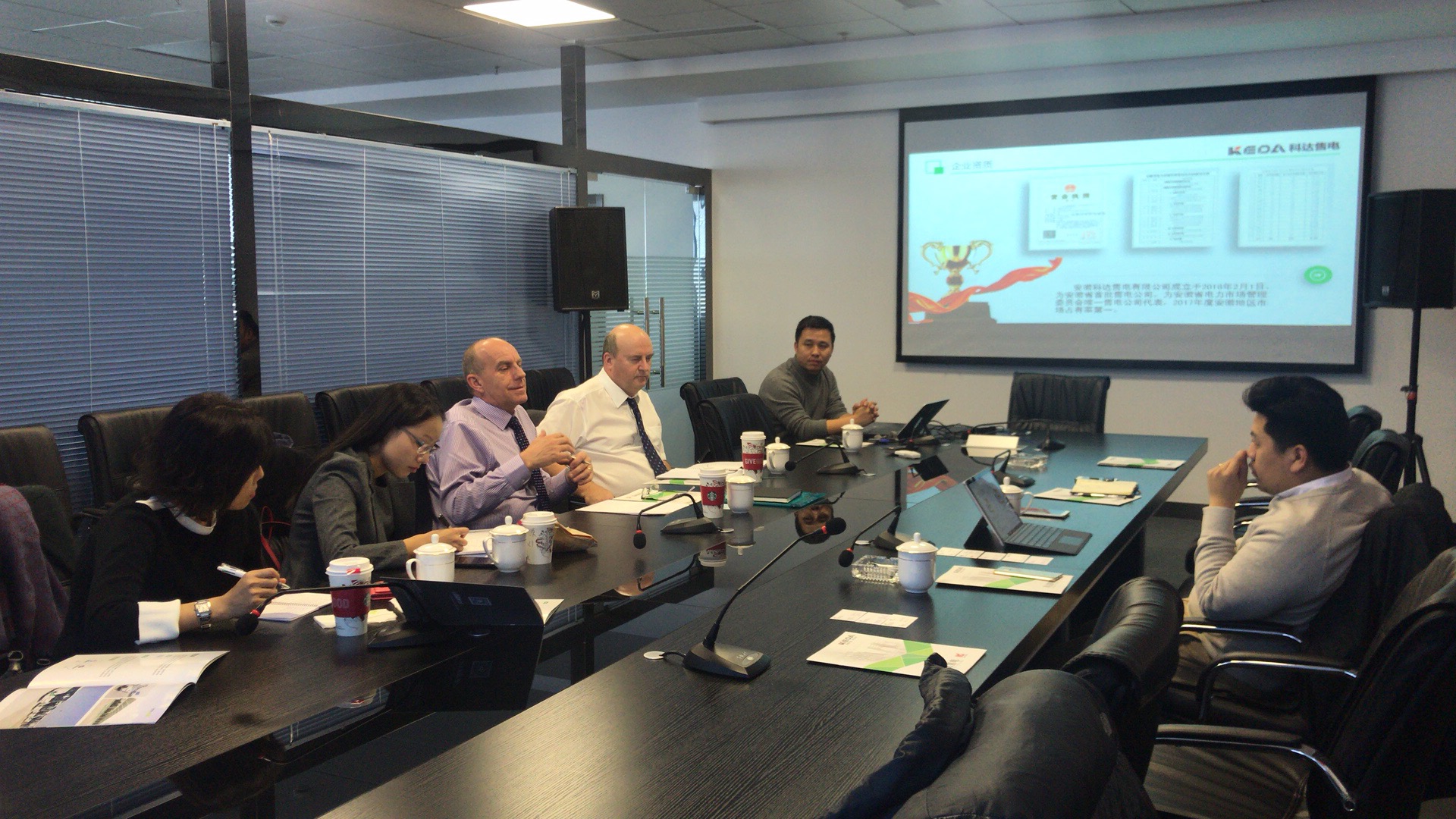 2017年11月22日,英國國際貿易部可再生能源主管Russell Headlam、高級貿易投資官員張瑩、蘇格蘭國際發展局貿易與投資高級經理(能源)李晶、英國駐上海總領事館氣候變化及能源處副處長陳伊娉等一行領導6人來到科達售電公司參觀交流,並就科達售電公司的發展與中國電力市場的改革展開座談。