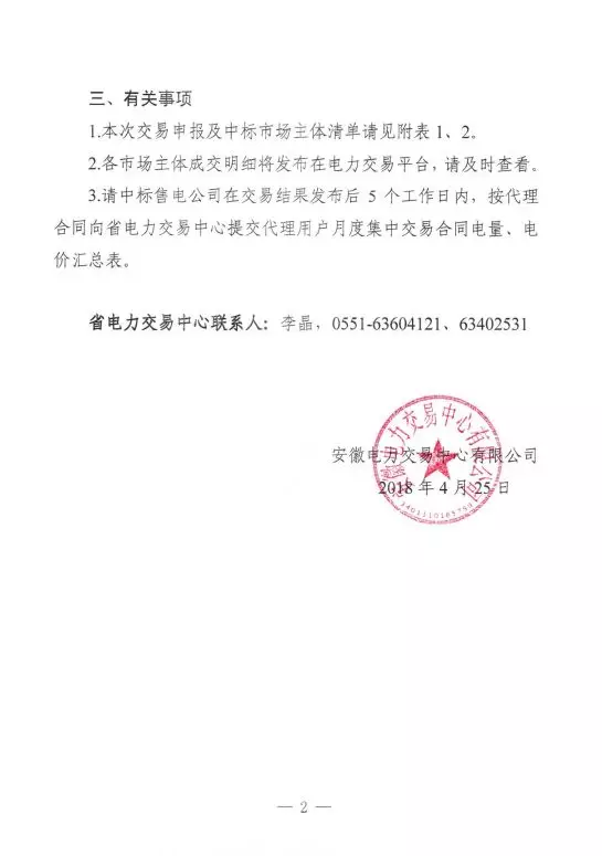 安徽電力交易中心日前發布瞭《安徽省2018年5月份電力集中直接交易成交結果的公告》,公告中稱,本次交易共成交電量1000000兆瓦時,統一出清電價(指發電側)爲383.90元/兆瓦時(出清點購電側申報電價爲384.4元/兆瓦時。