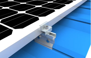 其他鋼結構屋面則採(cǎi)用BIPV支架形式,採(cǎi)用熱浸鍍鋅金屬内闆+75mm厚玻璃纖維保溫棉+鍍鋁鋅鎂BIPV專用角馳屋面闆敷設,再位於(yú)角馳型屋面闆波峰處安裝鋁合金角馳型夾具,配合相配套的鋁合金壓塊固定件固定組件,光伏組件順屋頂斜面安裝,本BIPV安裝方式後期維護彩鋼瓦、組件拆卸非常簡單方便、對屋面彩鋼瓦可以做到0損傷。