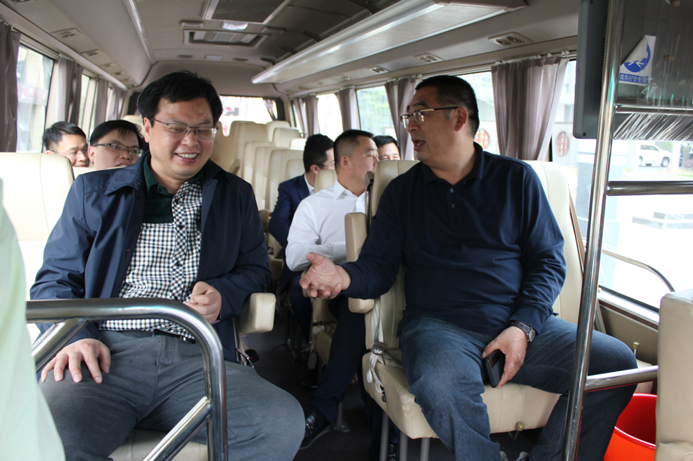 會前,迎江區區委常委、臨港經濟開發區管委會主任陶小也與邊董一行參觀考察瞭安徽科達售電安慶分公司以及科達售電在臨港經濟開發區管委會行政服務中心設立的能源服務窗口。一行乘坐瞭科達新能源通勤大巴參觀瞭臨港經濟開發區並考察調研瞭座落在該開發區的科達重點客戶安徽華泰林漿紙有限公司。